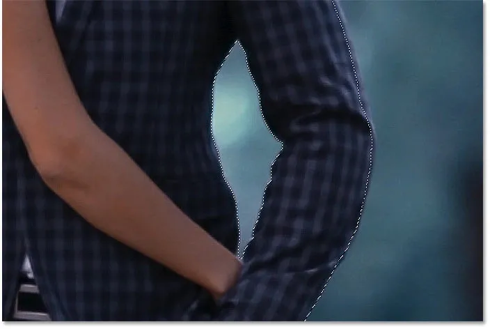 Siin on veel üks minu pildi probleemne piirkond. Meeste ülikonna jope külje ja käe vaheline ruum tuleb valikust lahutada: