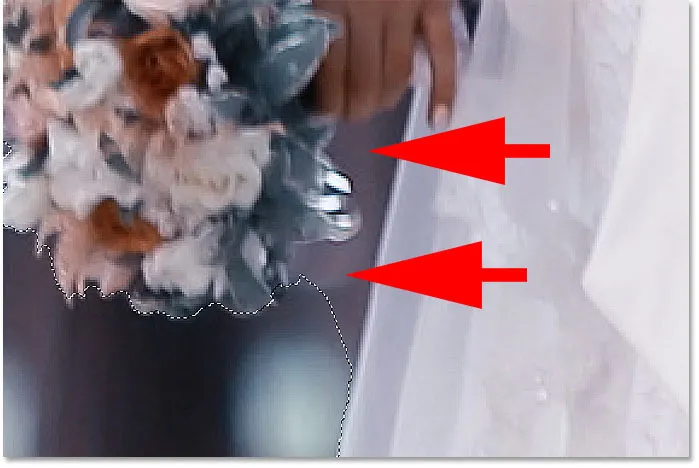 Minu pildiga pange tähele, et kimpude ja kleidi vaheline ala on samuti valitud ja see tuleb eemaldada: